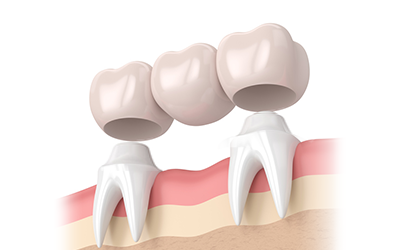 양옆 치아를 덮어씌워 인공치아를 지탱하도록 연결하게 되며 기둥이 되는 치아들이 단단한 경우 시술하게 됩니다.